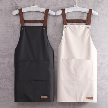 Delantal impermeable de tela de lona para cafetería con correa de cuero